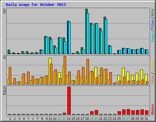 | Day | Hits | Files | Pages | Visits | Sites | KBytes | ||||||